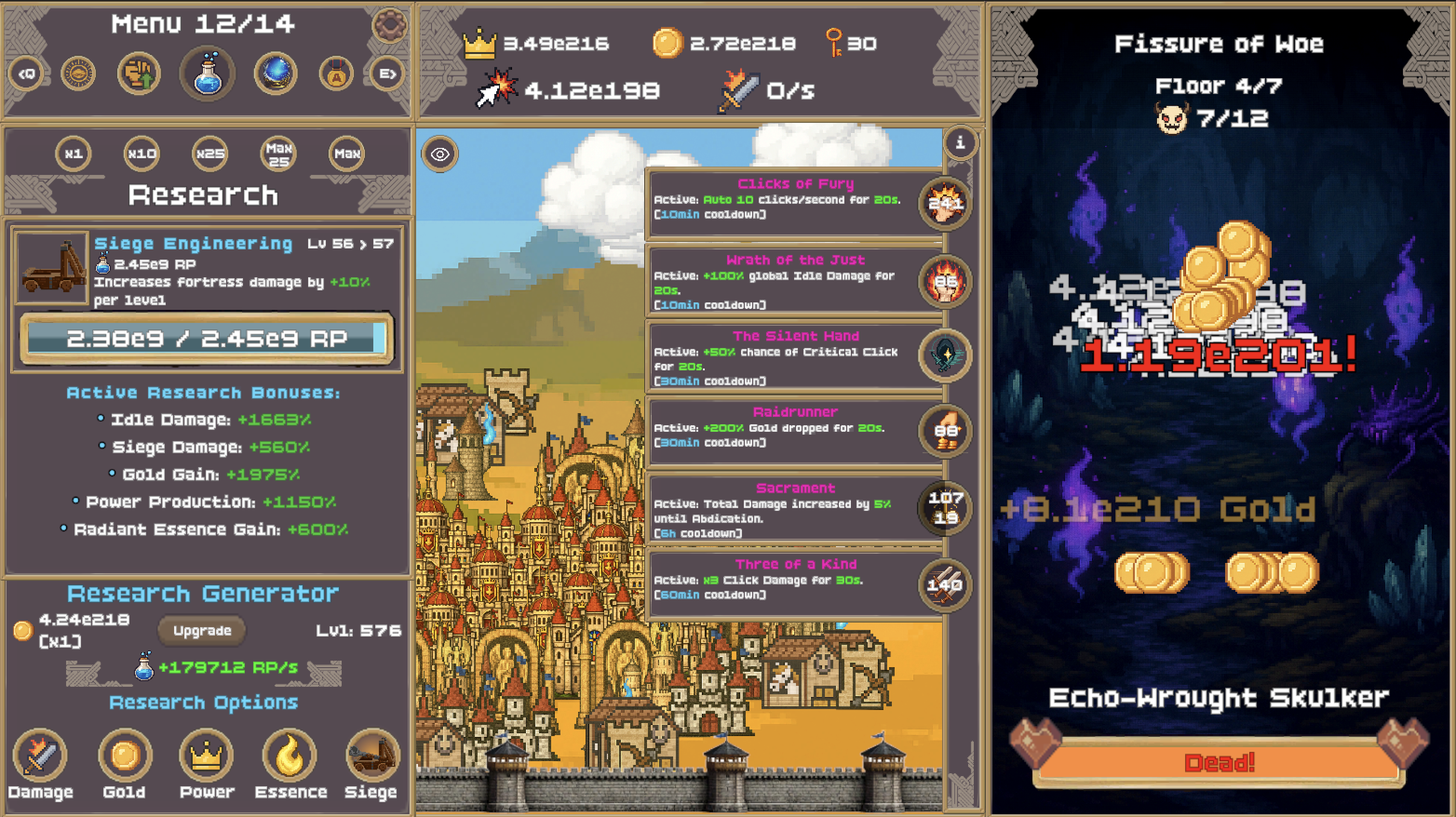 Fight through endless waves of monsters, defeat powerful bosses, and push your way through increasingly dangerous stages. Every victory fuels your kingdom’s growth — allowing you to construct buildings, recruit heroes, unlock research, and discover powerful synergies that reshape how your realm functions.